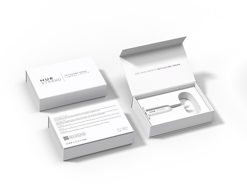 NUE Strand is a revolutionary product redefining cosmetic tattooing and hair restoration by utilizing cutting-edge biomimetic peptides and growth factors to stimulate dormant hair follicles and promote natural hair regrowth.